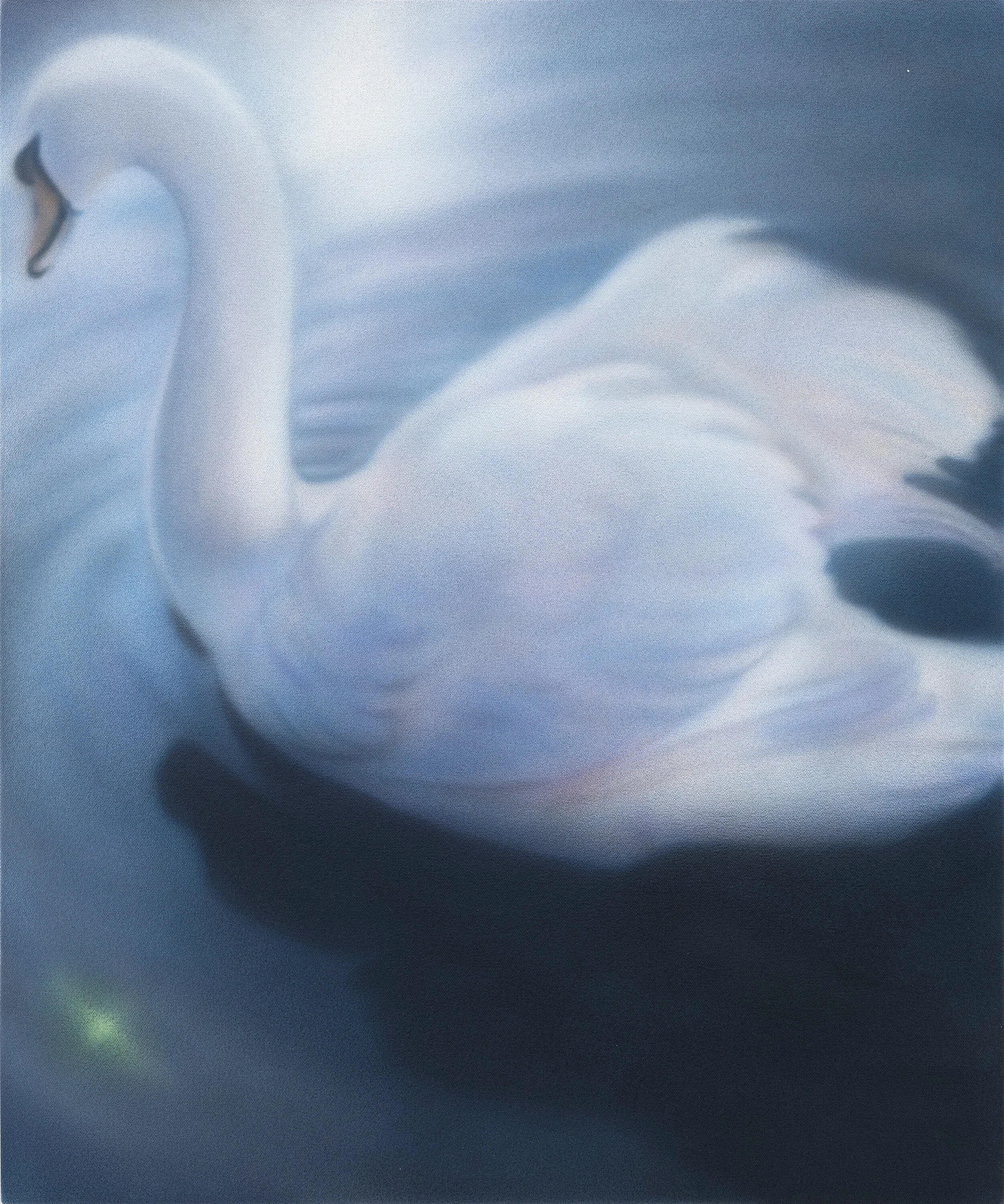 Since 2020 Aryo Toh Djojo’s paintings have explored the idea of mystery and spirituality through the subject of UFOlogy. He uses the airbrush in a traditional, free-hand technique, without the use of stencils or masking tape. His cinematic images and subjects portray the mise-en-scènes of daily life with UFOs lurking in the distance and tries to bring the viewer into a state of meditation- in hopes to find answers within and beyond our world.