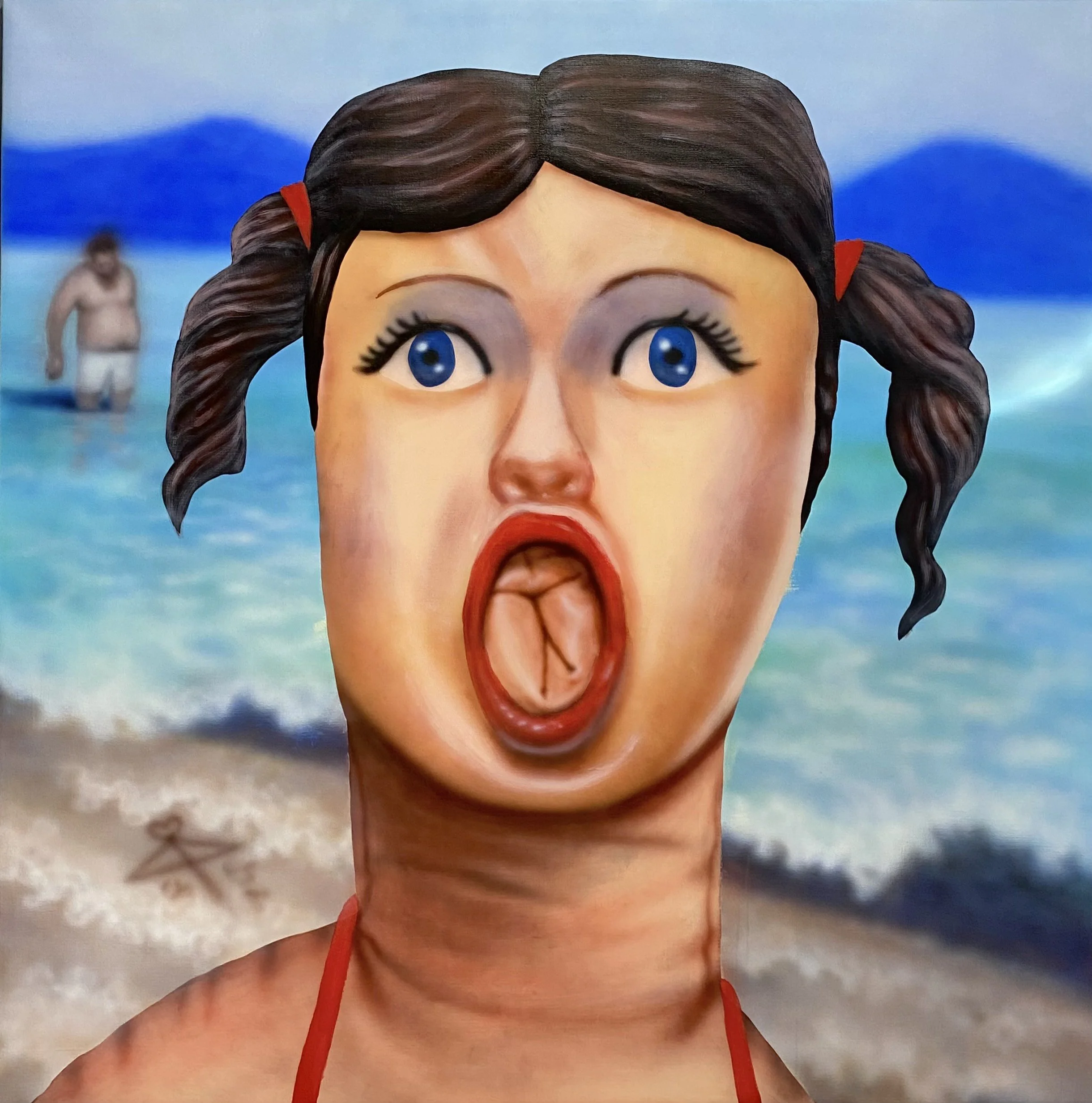 Hiroshima Shinkichi currently lives and works in Saitama Prefecture. Hiroshima uses acrylic paints and airbrushes to create his pieces, with the use of pop colours and patterns to produce lively atmospheres, and thus creating a juxtaposition with some of his darker themes.