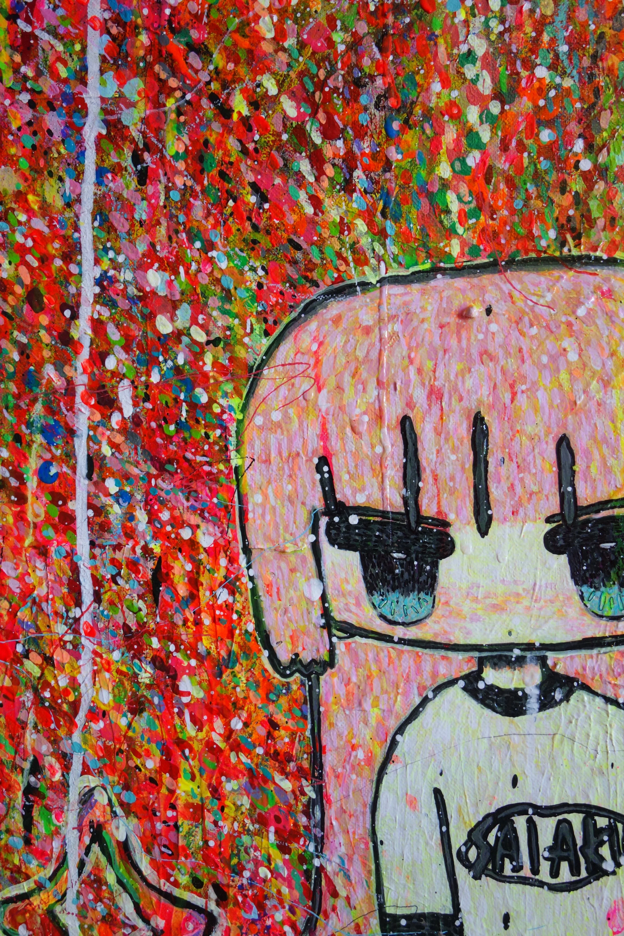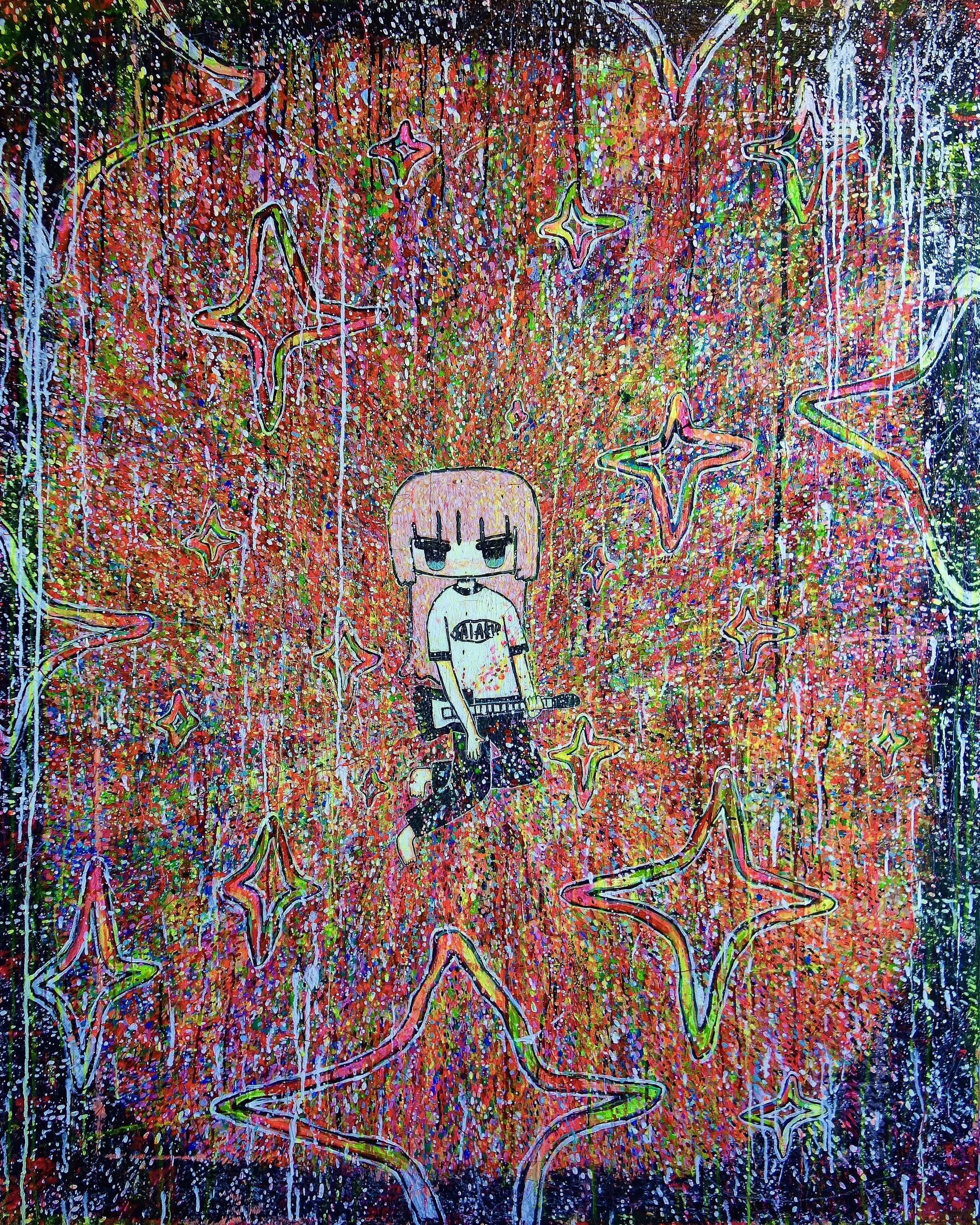 A graduate of a Tokyo technical design school, SAIAKUNANA began exhibiting in 2013 under her real name, later adopting her now-iconic moniker in 2015. Her aesthetic—vivid, emotional, and unapologetically punk—draws from rock culture, graphic design, and Japanese subcultures. Through expressive linework and explosive color, she constructs intimate narratives of resistance, desire, and freedom.